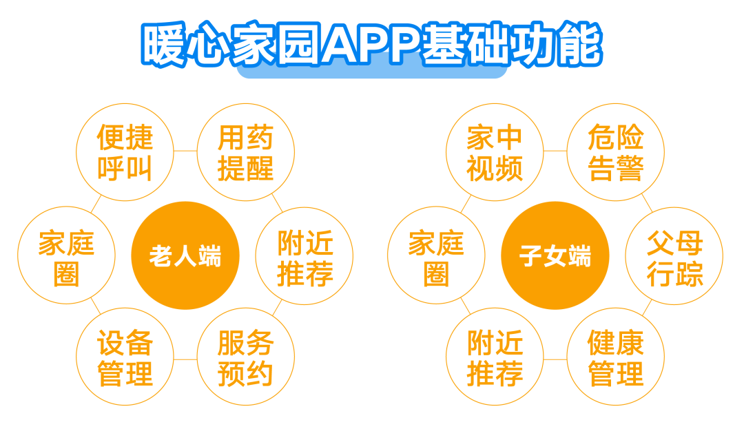 该方案通过将联通的 “大数据+云计算+物联网+移动互联”优势技术与智慧养老概念有机结合,可以分别在老人端与子女端分别提供便捷呼叫、用药提醒、服务语音、设备管理以及家中视频、危险告警父母行踪、健康管理等功能。例如,“暖心家园”可以与门磁设备、燃气警报器相关联,当老人出门遛弯时,家人的手机APP和短信上都能收到短信,万一忘记关火,会第一时间发出告警并通知子女。