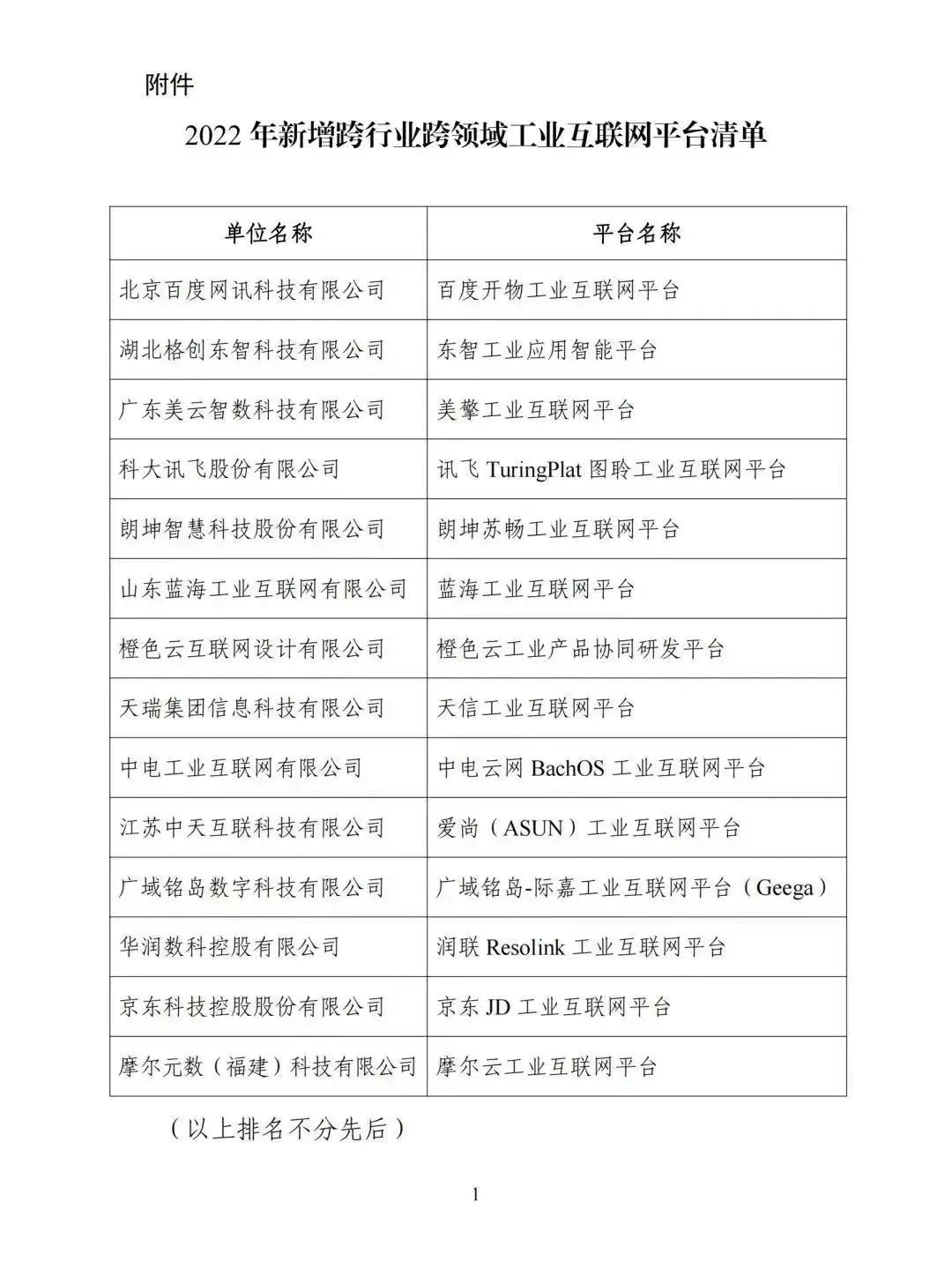 ■ 工信部发布2022年新增双跨工业互联网平台清单