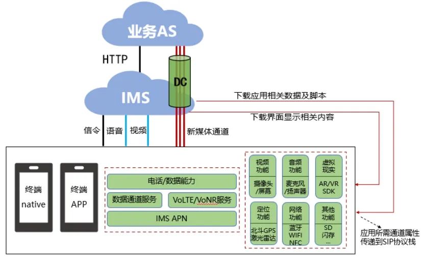 5G新通信通过在VoNR/VoLTE网络中引入数据通道(Data Channel)技术,在提供音视频通信的同时,可以同步传递图片、菜单、表情、位置和AR/VR等全媒体信息,将传统音视频通话升级为交互式、沉浸式实时通信,给用户带来全新的业务体验。
