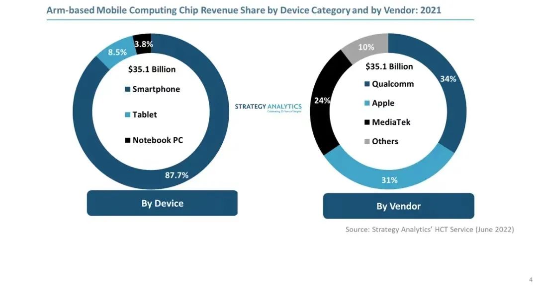 ■ 2021年基于Arm移动计算芯片市场收益351亿美元 高通、苹果、联发科分列前三
