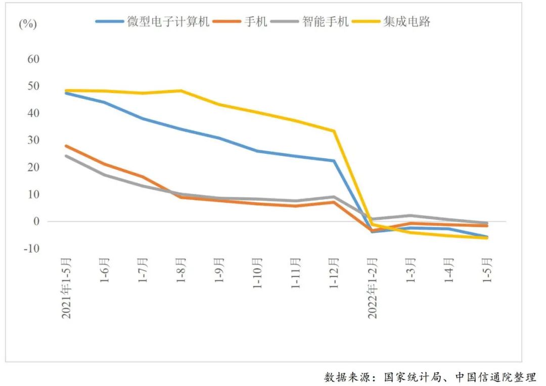 ■ 2022年5月电子行业运行数据报告:智能手机累计产量增速由正转负