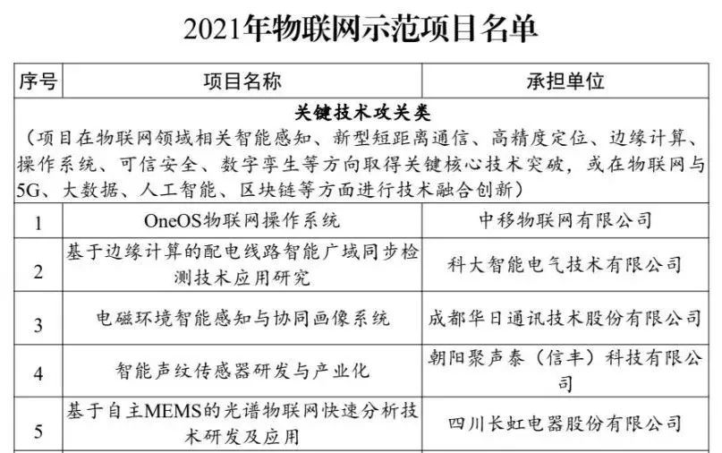工信部近日发布的《关于公布2021年物联网示范项目名单的通知》显示,按照《物联网新型基础设施建设三年行动计划(2021-2023年)》要求,经组织推荐、综合评审和网上公示等环节,工信部确定了2021年物联网示范项目名单,共179个项目上榜。