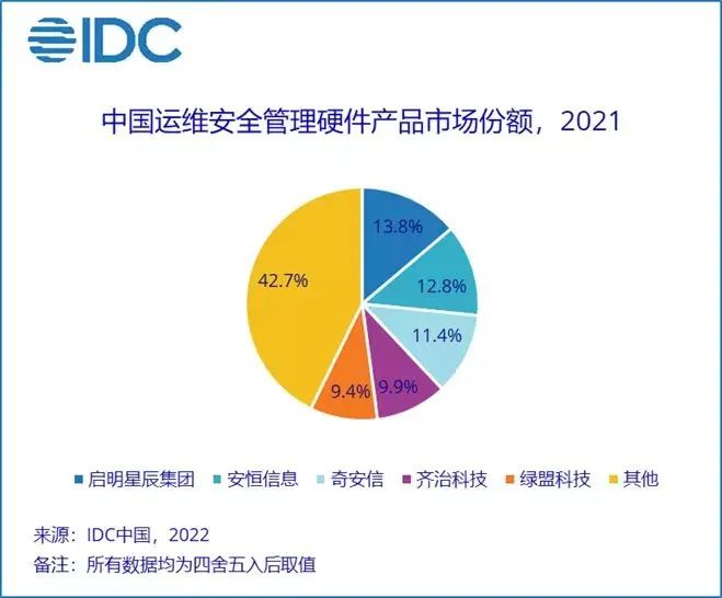 市场研究机构IDC发布的《中国运维安全管理硬件市场份额,2021:技术融合,场景适配》报告显示,2021年中国运维安全管理产品硬件产品的市场规模达到1.6亿美元,同比增长18.9%。IDC指出,中国运维安全管理硬件市场竞争主要以“综合型安全厂商+专业技术领域安全厂商”格局为主,头部玩家包括启明星辰集团、安恒信息、奇安信、齐治科技、绿盟科技等厂商。