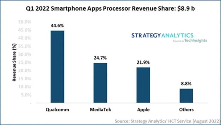 ■ 报告称2022Q1智能手机AP市场:高通达到45%,海思接近零