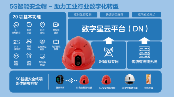 近日,中兴通讯在2022世界5G大会上推出了5G智能安全帽MT5000,利用5G大带宽、低时延的特性,集成了5大类20项功能,包括语音控制、视频控制、定位、气体检测、报警等,实现智能感知识别人员分析。
