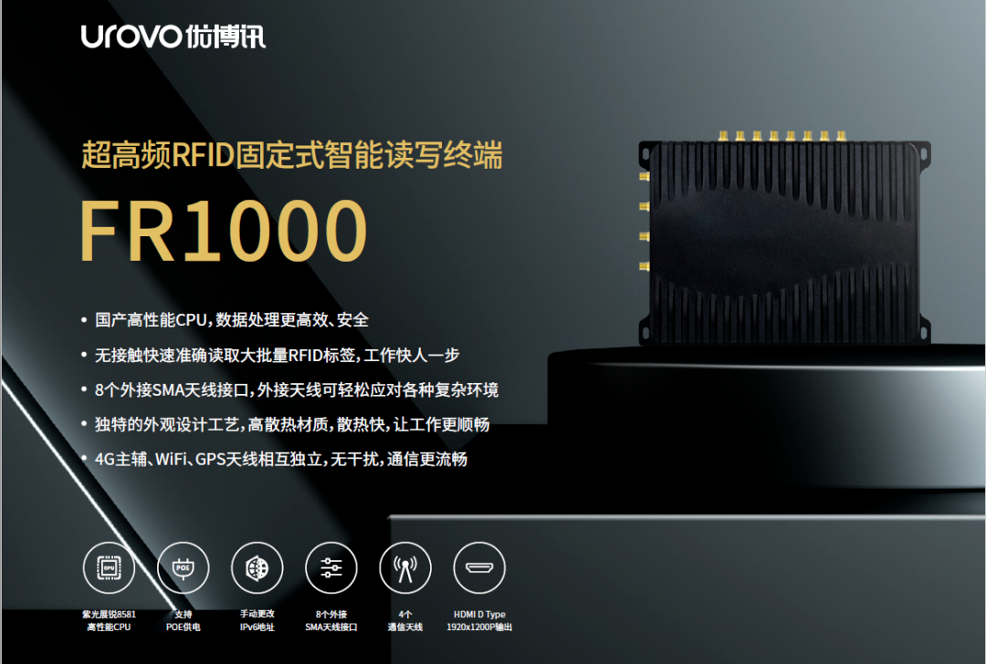 近日,紫光展锐携手优博讯推出新一代超高频RFID固定式智能读写终端FR1000,可实现无接触快速准确读取大批量RFID标签,基于紫光展锐自主研发的芯片级安全技术,优博讯FR1000的标签识别速度最快可达700张/秒,将为仓储物流、金融行业、智能制造、服装与零售行业等诸多领域带来效率提升和智能化升级,在库存盘点、货品溯源、固资管理、银行业务、商品生产与物流、门店零售等各种工作场景发挥其作用。