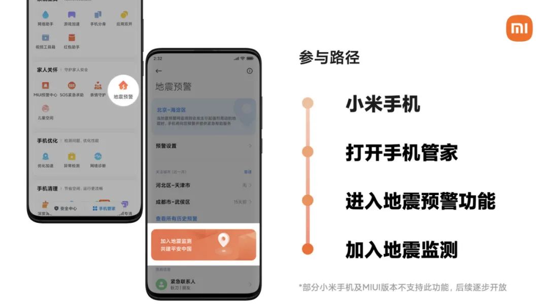 9 月 16 日,北京小米移动软件有限公司、北京小米松果电子有限公司申请的“地震信息提醒方法、装置、路由器、电子设备及存储介质”专利公布。小米手机此前已上线地震预警功能,支持全国 25 个省份(含直辖市、自治区)的大部分地区。开启地震预警功能的用户将在地震发生且将实际受到地震影响时,收到强提醒。地震预警不是地震预测,而是在地震发生之后,破坏性的地震波到达之前发出的紧急警报。这个警报将会告诉大家地震还有多久到来,以及地震可能造成的影响,借此让我们拥有宝贵的避险时间。此外,小米手机也上线了地震监测功能,利用手机内置的低功耗传感器感应地震波,此后通过 AI 算法测算地震信息,并第一时间向受影响地区的群众发出预警。