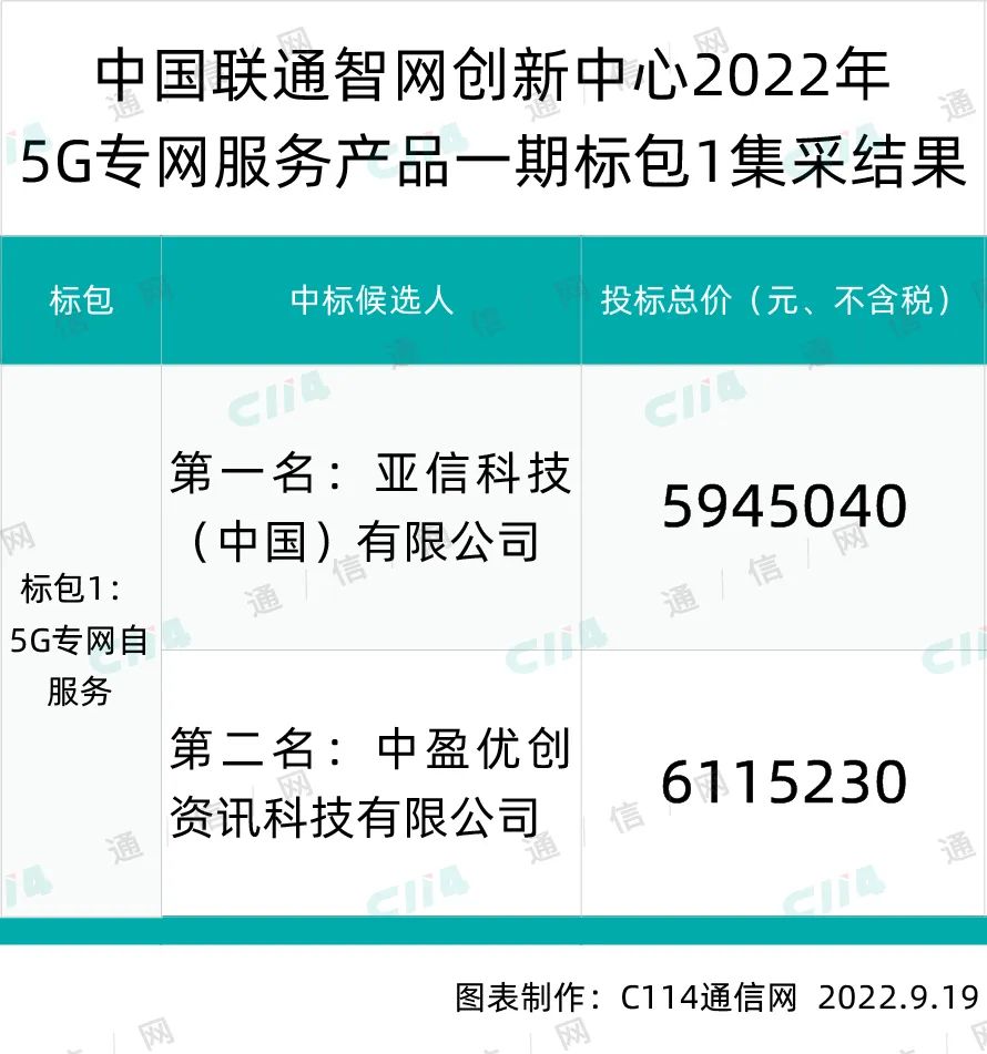 ■ 中国联通智网创新中心5G专网服务一期集采标包1结果出炉