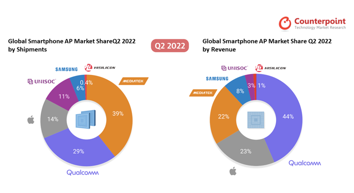 ■ Counterpoint:二季度手机芯片市场联发科39%份额居首