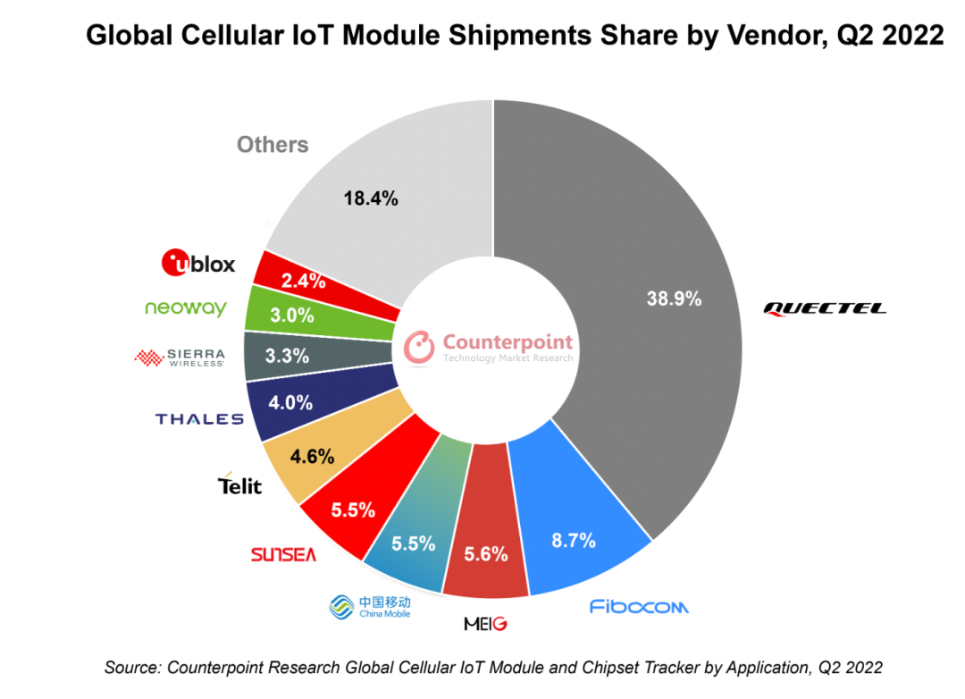 ■ Counterpoint:Q2全球蜂窝物联网模组出货量年增20% 移远通信排名第一