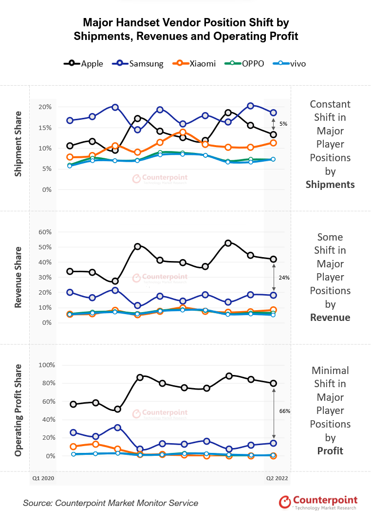 ■ Counterpoint:Q2全球手机市场利润同比增长6%,但只有三星、苹果尝到了甜头