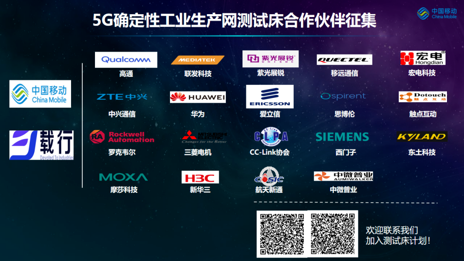 中国移动联合罗克韦尔、中兴通讯、华为、三菱、高通、宏电、H3C、MOXA、航天新通等产业伙伴共同发起“5G确定性工业生产网测试床”计划,积极探索5G+工业确定性网络的解决方案,提供满足行业需求的确定性服务能力,避免因网络不稳定,导致产品质量下降、产线停机等问题,助力5G融入工业生产。