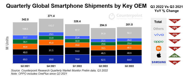 ■ Counterpoint:2022年第三季度全球手机营收下降3%