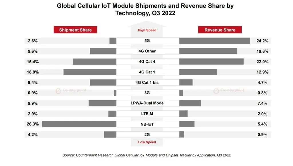 ■ Counterpoint:2022年Q3蜂窝物联网模块出货量同比仅增2%
