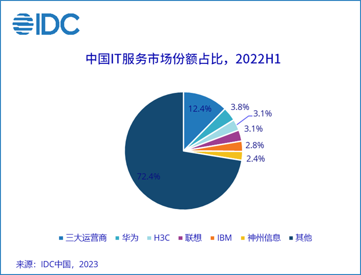 ■ IDC研究:2022上半年中国IT服务市场整体规模达 176.6 亿美元同比增长 4.5%,三大运营商份额占 72.4%