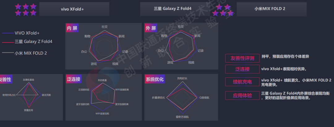 中国联通在渠道合作伙伴的支持和鼓励下,重磅发布中国联通2022年度合作手机评测报告。本轮评测中,中国联通分4个价位段,两种手机形态选取33款传统手机和3款折叠屏手机进行评测,用消费者的视角,同产业链合作伙伴共同开展端网协同的用户体验优化,共同为消费者提供优质的5G产品和服务。良好的用户体验是赢得客户的关键,本次中国联通从手机产品的四个维度展开专项测试,引导产品进行有针对性的用户体验优化。通过综合评测,小米、OPPO和vivo均有多款机型上榜,荣耀在中低端评测中表现优异。