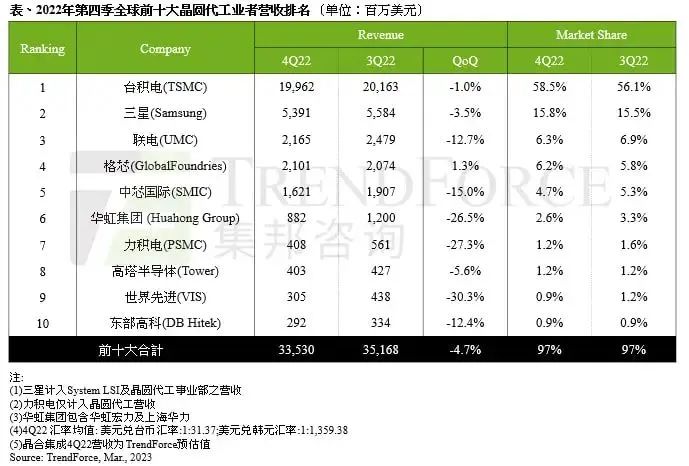 ■2022年Q4三星与台积电全球晶圆代工市场份额差距扩大