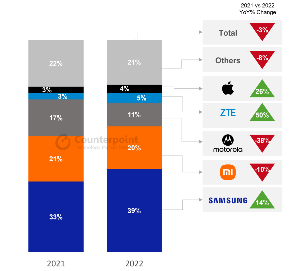 ■ Counterpoint:2022年荣耀、中兴在哥伦比亚智能手机市场出货量大增