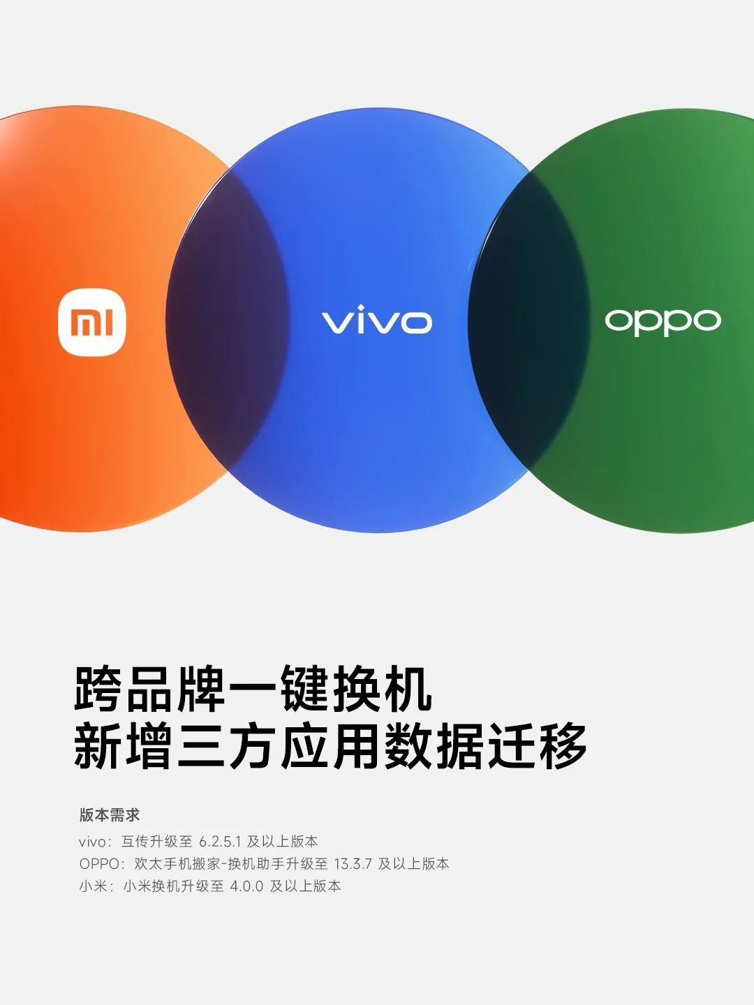 ■ OPPO、vivo和小米手机官宣合作:跨品牌一键换机新增第三方应用数据迁移