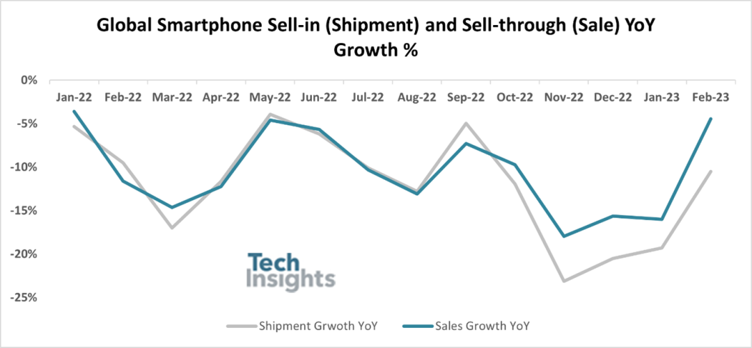 ■ TechInsights:2月全球智能手机出货量同比下降11%,三星位居第一