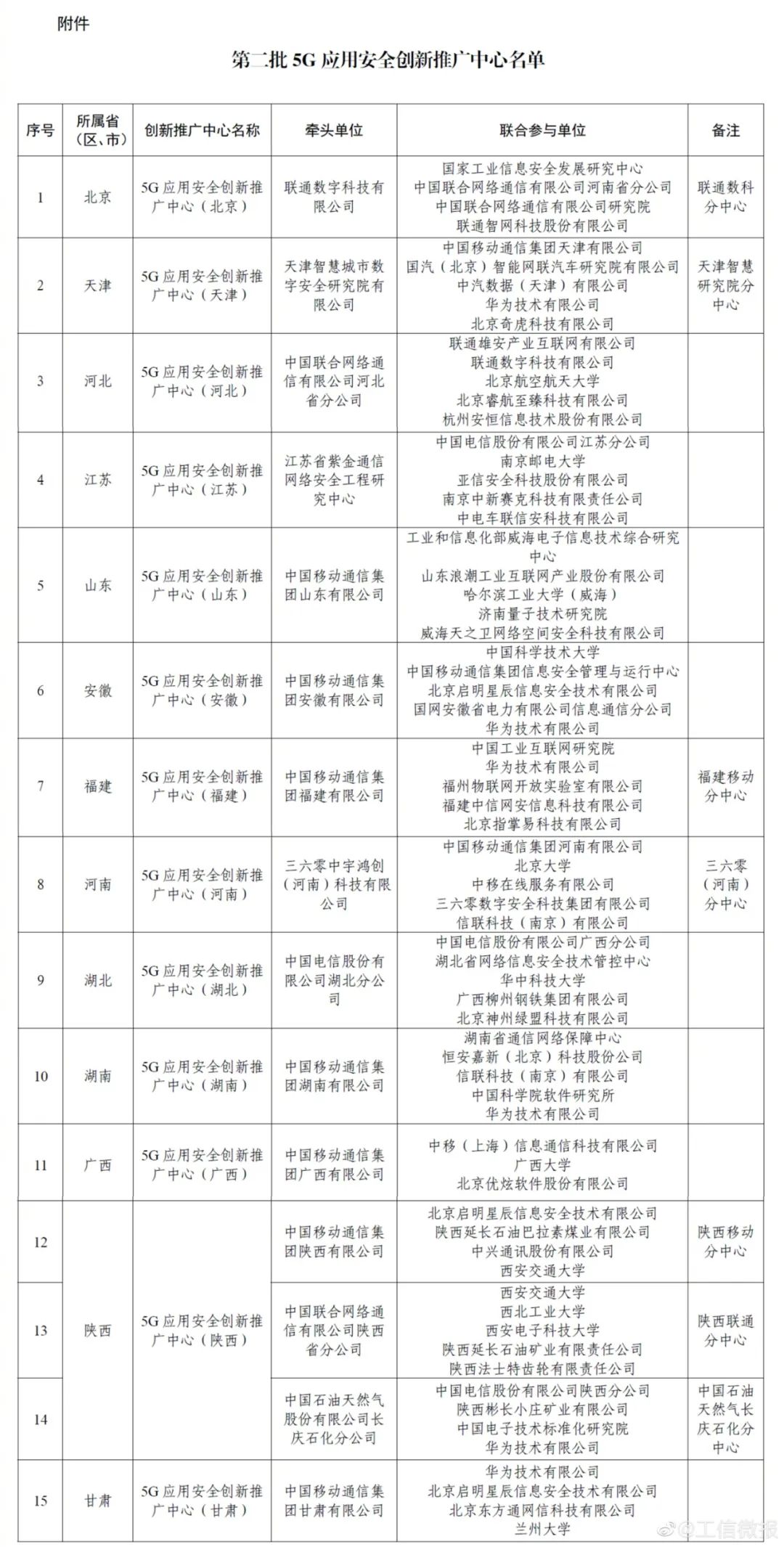 ■ 工信部公布第二批5G应用安全创新推广中心名单