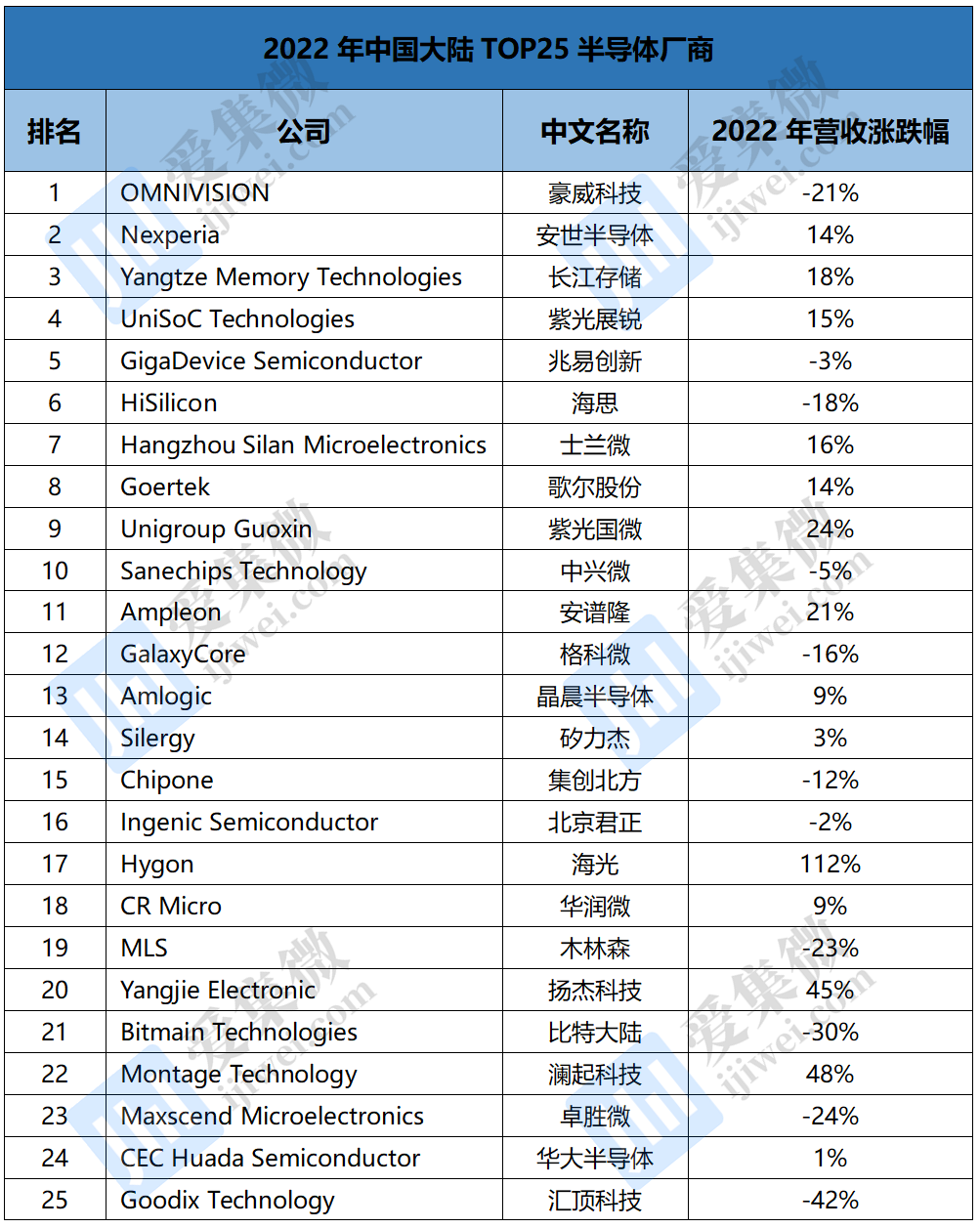 ■ 2022中国大陆半导体厂商Top25:紫光展锐排名第4