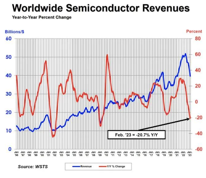 ■ SIA:2月全球芯片销售额同比下降 20.7%,中国市场跌幅超三成